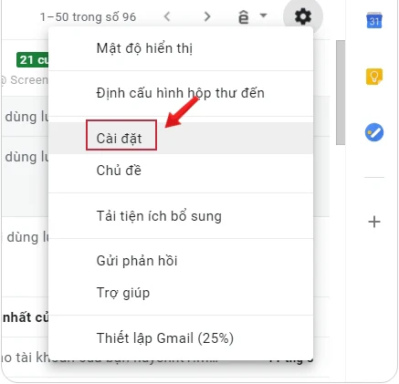 Vào Gmail 1 (gmail1@gmail.com) chọn cài đặt